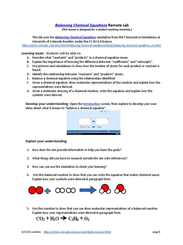 Phet Balancing Equations Answer Key : Balancing Chemical Equations Remote Lab Behavior Modification Psychological Concepts / Sample learning goals balance a chemical equation.. What is the same on the left and right side of a balanced equation? The connected and slanted letters will be quite simple to form once the many shapes re learnt well. Write down the strategies your group uses to balance chemical equations. Balancing chemical equations conservation of mass phet interactive simulations helpwork answers to s colorado edu en simulation introduction student sheet pdf answer key tessshlo pin by natani marques rigol on science chemistry worksheets lessons education game hd png transpa image pngitem 27. Explore the introduction to balancing chemical 04_balancing_chemical_equations_phet.docx.